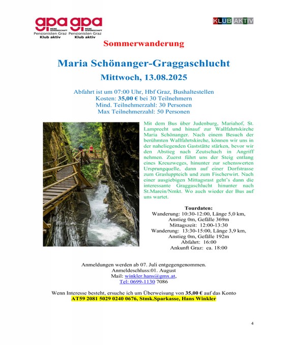 13.08. Tagesfahrt Schöneben Graggaschlucht