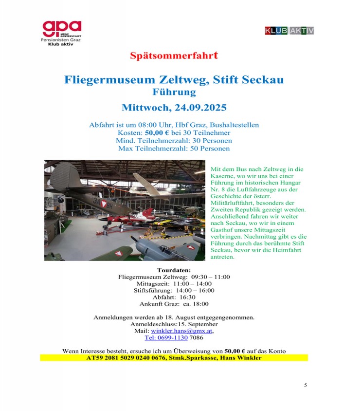 24.09. Tagesfahrt Stift Seckau u. Flugmuseum