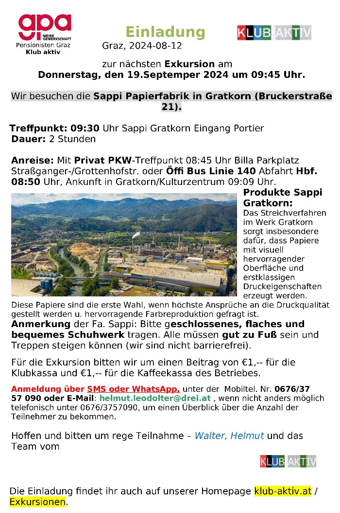 Einladung Sappi Gratkorn - GPA-djp Graz PensionistInnen KLUB AKTIV