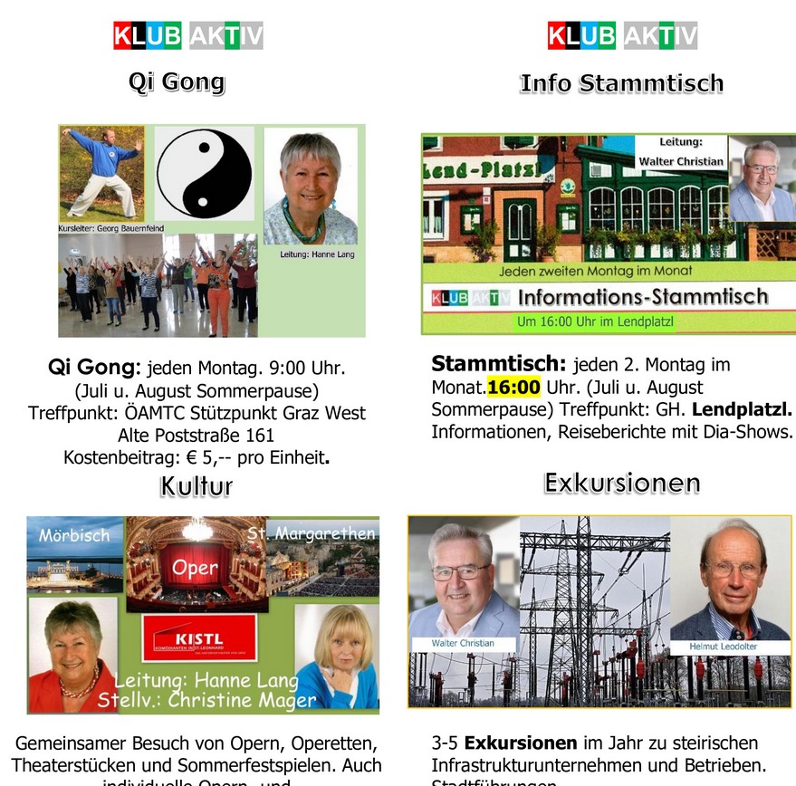 Das Team vom "Klub aktiv" begrüßt Sie herzlich auf unserer Homepage | |||