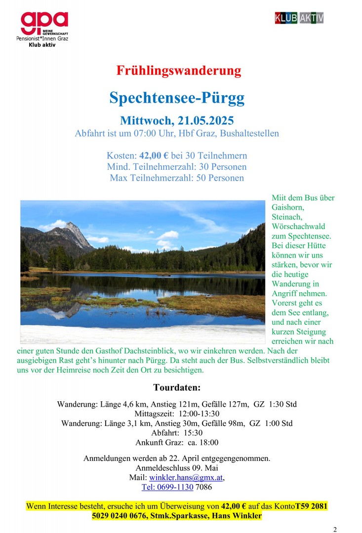 Spechtensee Pürgg - GPA-djp Graz PensionistInnen KLUB AKTIV
