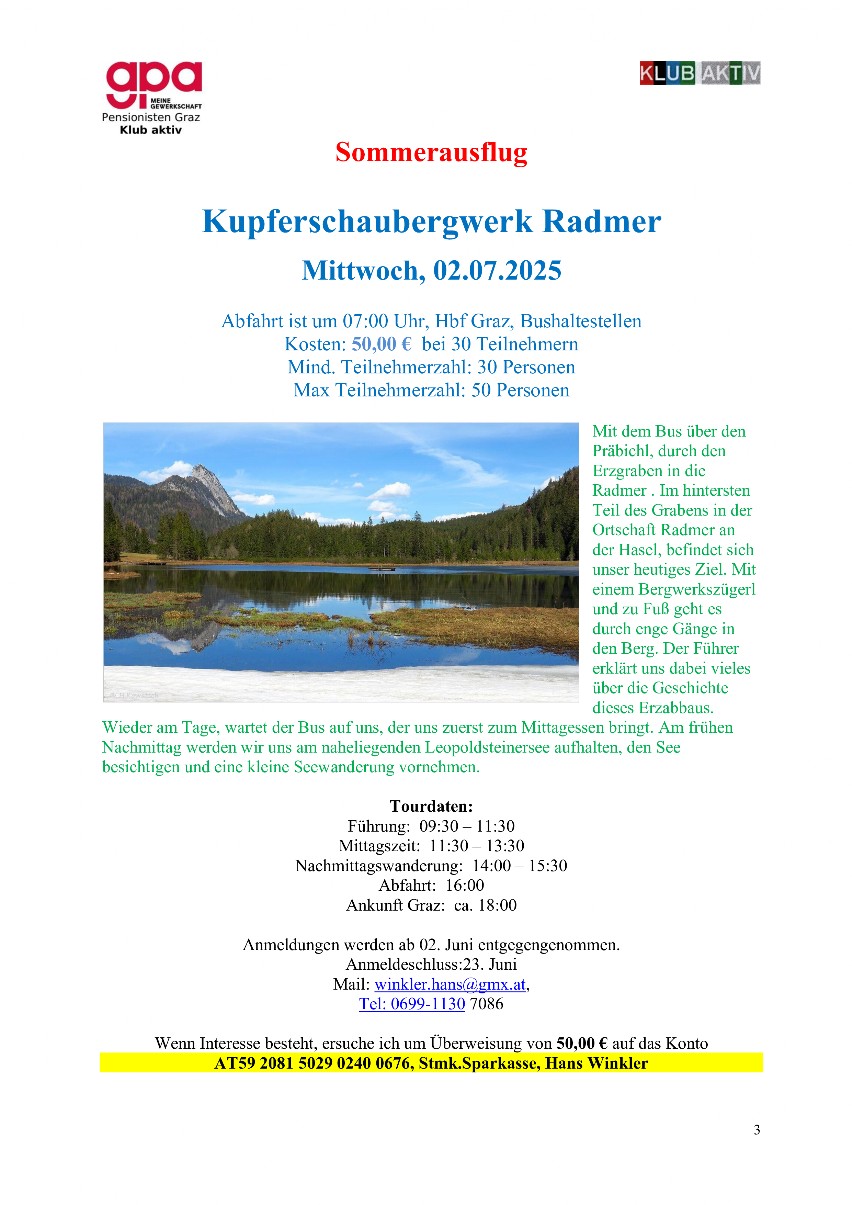 Tagesfahrt Radmer Leopoldsteinersee - GPA-djp Graz PensionistInnen KLUB AKTIV