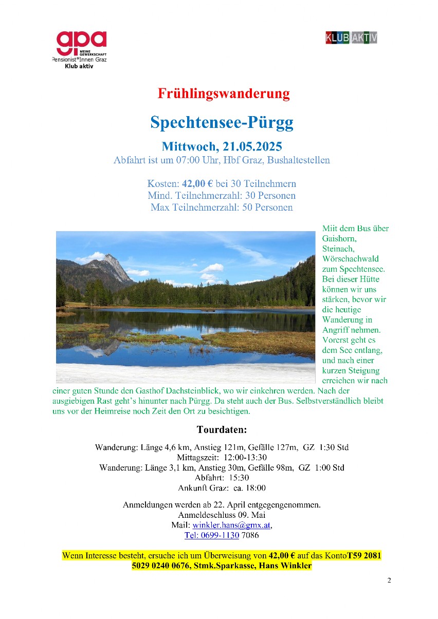 Tagesfahrt Spechtensee - GPA-djp Graz PensionistInnen KLUB AKTIV